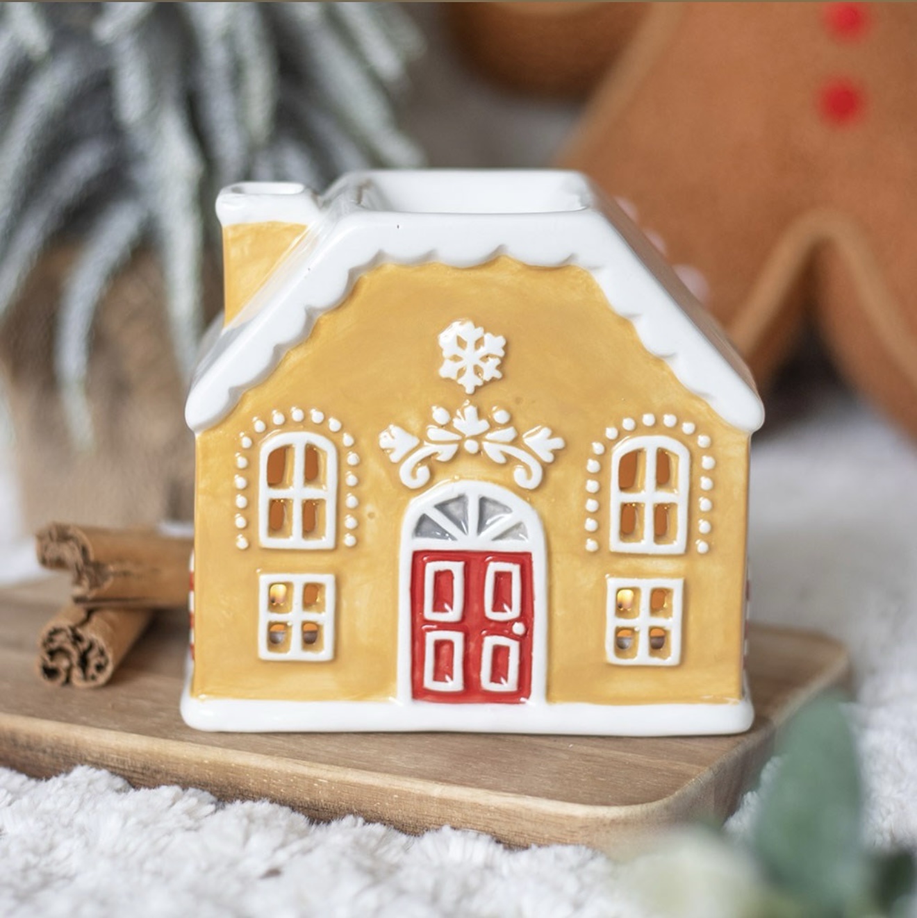 Sweeten your festive season with our adorable Candy Cane Gingerbread Wax Burner. This delightful ceramic burner combines two beloved Christmas icons – candy canes and gingerbread – to create a charming decorative piece that fills your home with cosy, seasonal fragrance.