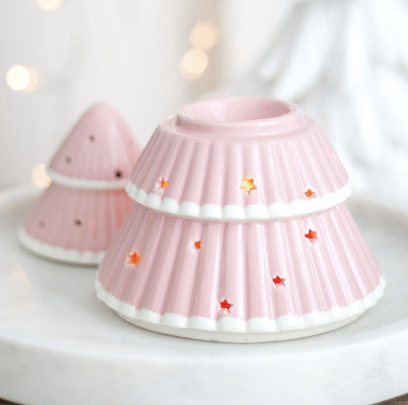 Create a dreamy festive atmosphere by pairing with our seasonal wax melts for a luxurious fragrance experience that complements the elegant pink aesthetic.