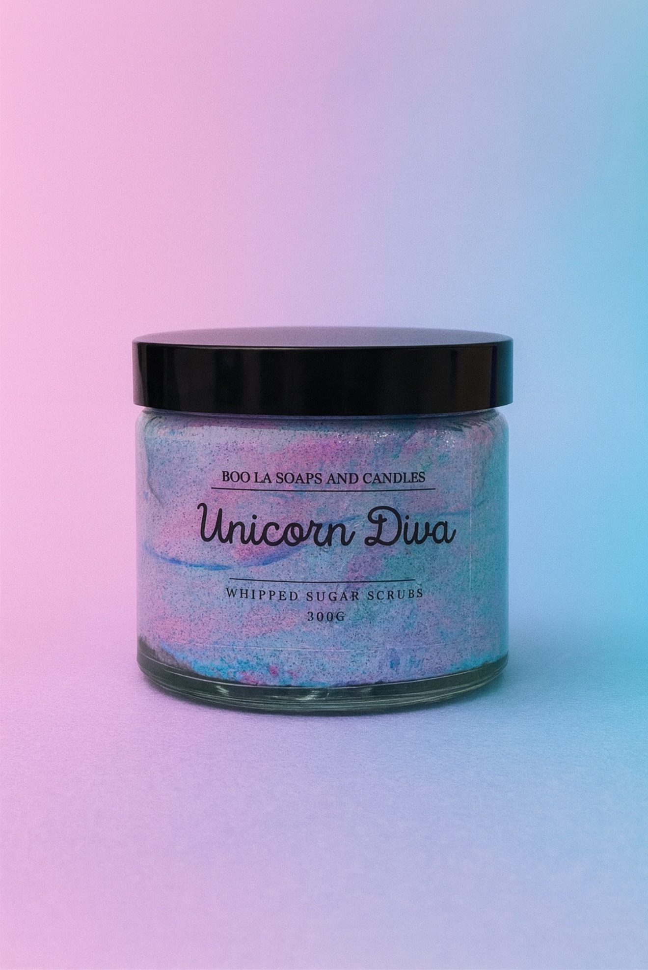 Discover the magic of silky-smooth skin with our Unicorn Diva Whipped Sugar Scrub. Shop today and transform your body care routine into a luxurious ritual.