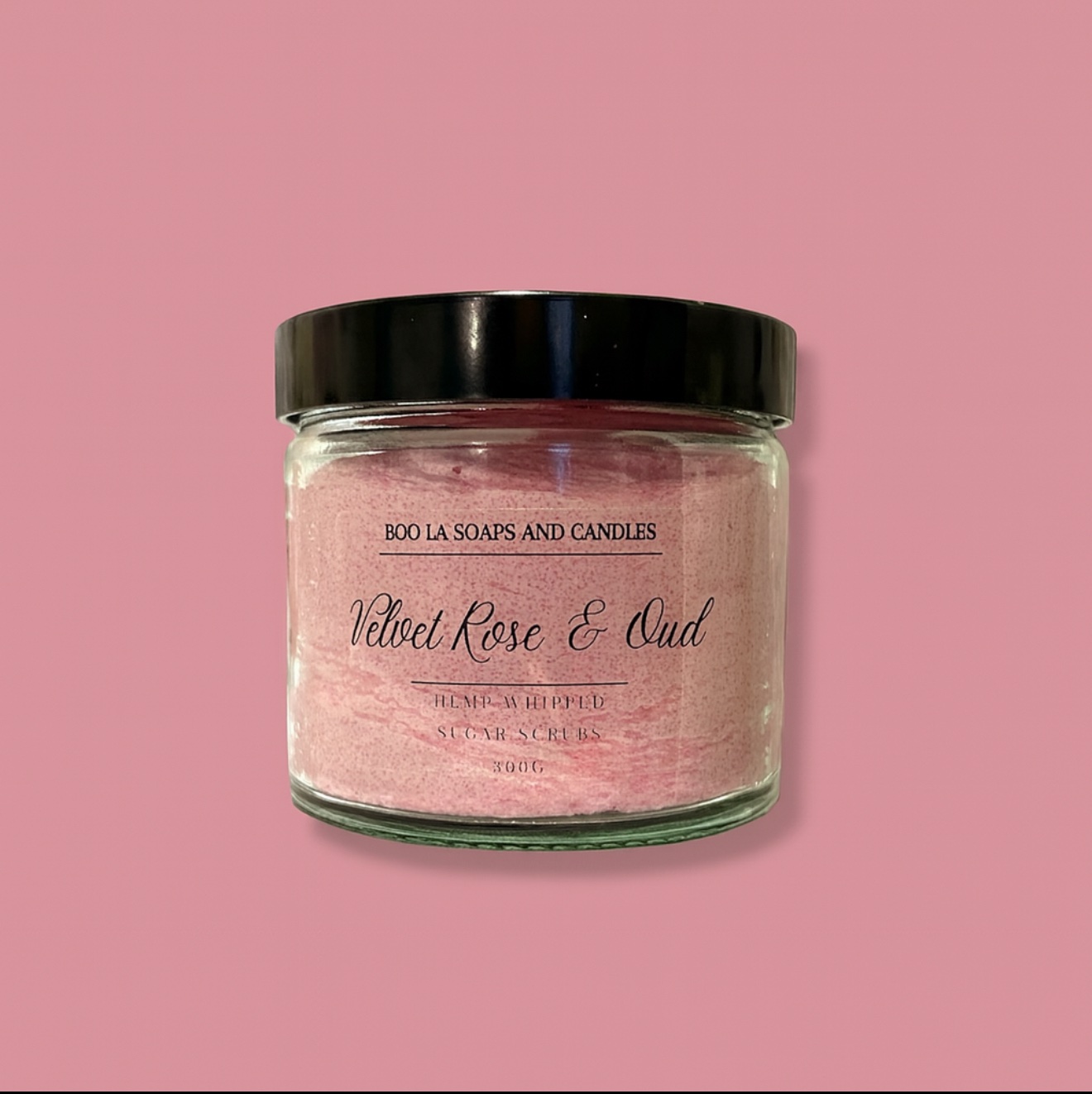 Experience the perfect harmony of romance and luxury with our Velvet Rose and Oud Whipped Sugar Scrubs